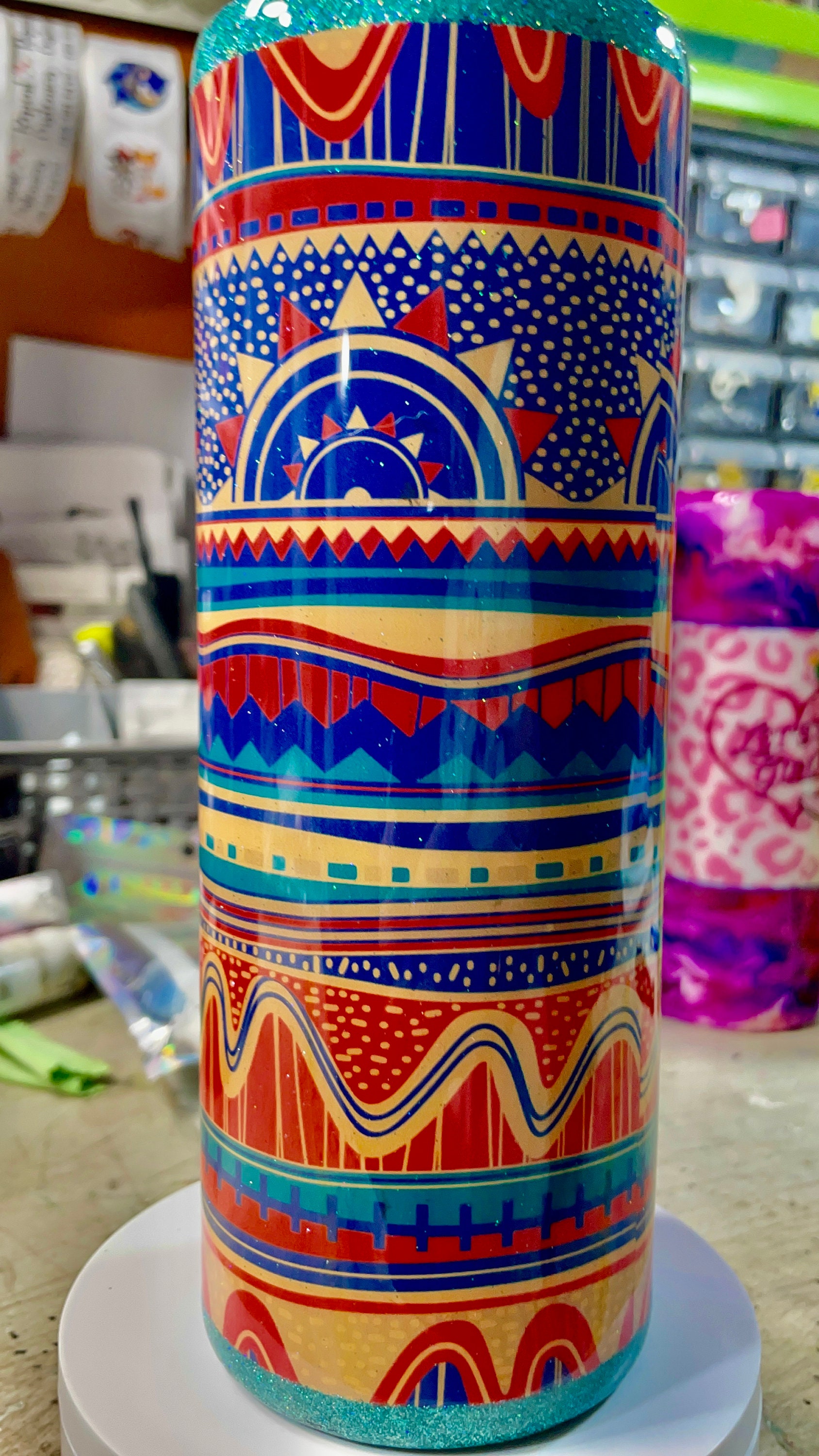Ready to Ship 20 Oz Skinny Stainless Steel Epoxy Tumbler w Lid & Straw, Geometric Teal, Orange, Yellow, Blue sealed with high end FDA compliant epoxy on a double wall insulated BPA free tumbler. Includes Lid and Straw. Custom colors available, select personalization and send note to seller. Each one unique in color and design due to the nature of the ink swirl. Thanks for looking and hope you love the designs!